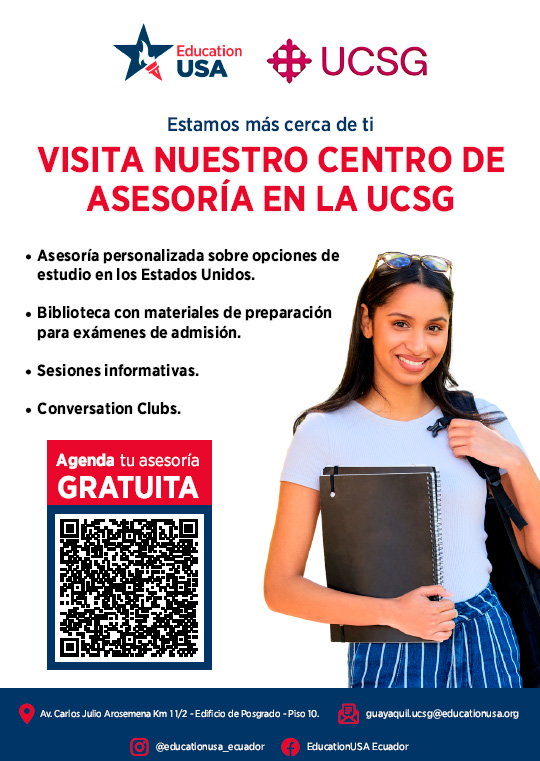 El Centro de Asesoría de EducationUSA con sede en la Universidad Católica de Santiago de Guayaquil está bajo CONVENIO firmado indefinidamente con la Oficina de Asuntos Públicos (PAS) de la Embajada de los Estados Unidos en Ecuador desde el mes de noviembre-11-2021. Link principal:https://educationusa.state.gov/